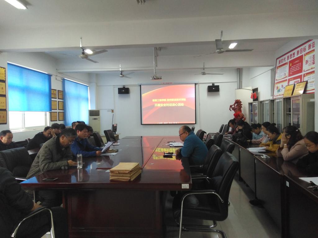 本站讯 11月15日下午,我院在3号楼三楼会议室召开安全对话谈心暨安全隐患排查动员会。学院全体教职工出席了会议,会议由党总支书记鲁建明主持。