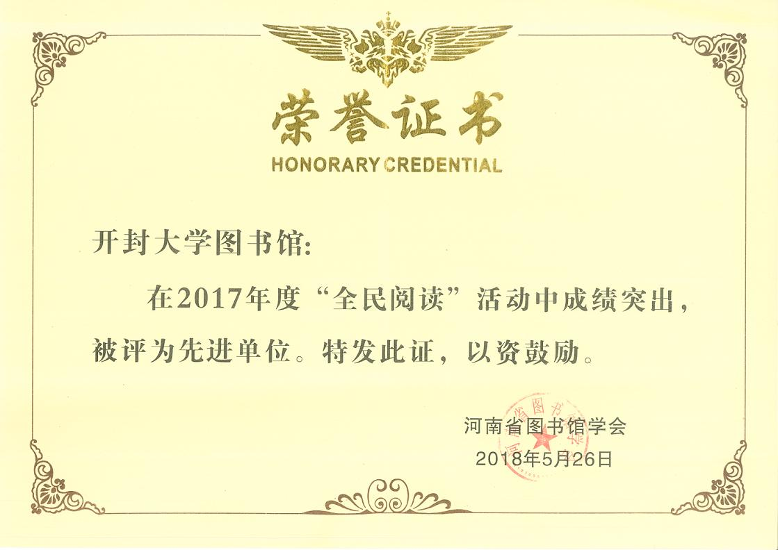 本站讯 近日,河南省图书馆学会九届五次全体理事会在郑州召开,会议对2017年度全省各系统图书馆在开展全民阅读活动中取得显著成绩的单位进行表彰。365官网图书馆荣获2017年度河南省全民阅读先进单位,副馆长许建萍荣获2017年度河南省全民阅读先进个人。