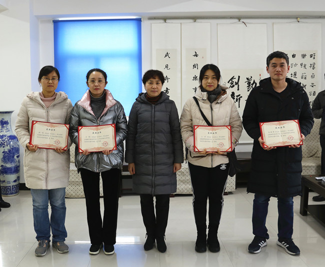 校党委委员、工会主席成芳为书画展获奖人员颁奖