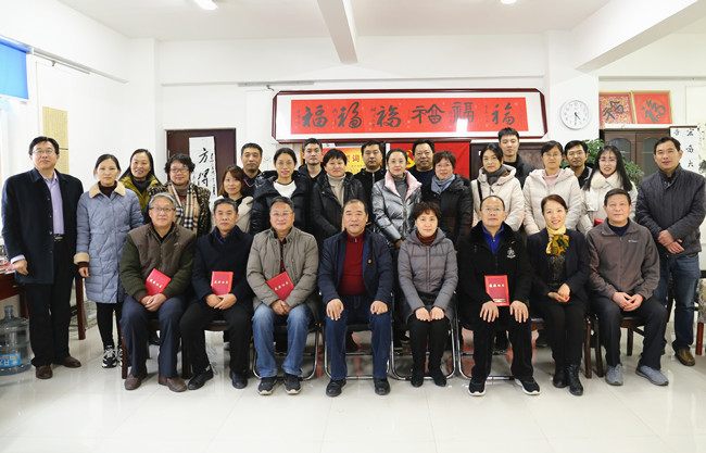 校领导、书法协会会员和书画展获奖人员合影