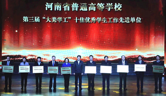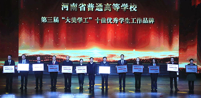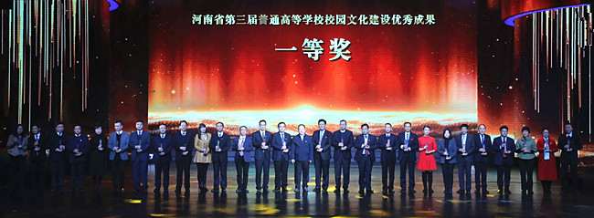 本站讯 12月3日晚,由中共河南省委高校工委、河南省教育厅主办,河南师范大学、河南教育时报社承办的河南省普通高等学校2019“大美学工”颁奖典礼暨校园文化建设优秀成果展演在新乡平原艺术中心举行。省教育厅党组书记、厅长郑邦山,新乡市市长王登喜,省教育厅副巡视员吕冰等出席颁奖典礼。365官网校长宋志敏、工会主席成芳出席了颁奖仪式,365官网学生工作队伍代表参加了颁奖仪式。