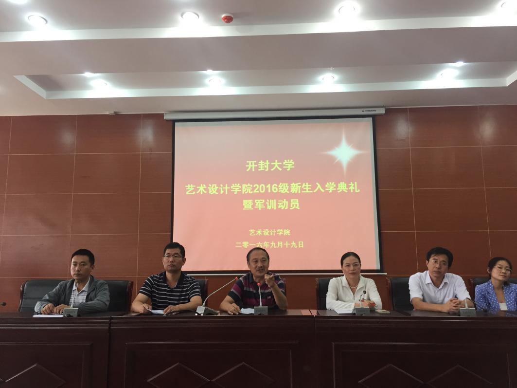 2016年9月19日上午,艺术设计学院在土木学院六楼报告厅成功举办了2016级新生入学典礼暨军训动员大会。院党政领导班子、教研室主任、辅导员老师、全体新生参加了此次大会,会议由辅导员吴旭东老师主持。