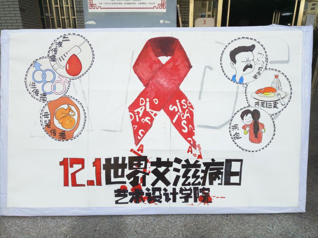 为了向广大同学普及艾滋病知识,预防艾滋病传播。艺术设计学院联系了开封市艾防办,于12月1日在我院9号楼门前举行“艾滋病宣传活动”。我院宣传部组织部社团部成员积极参加本次活动宣传。