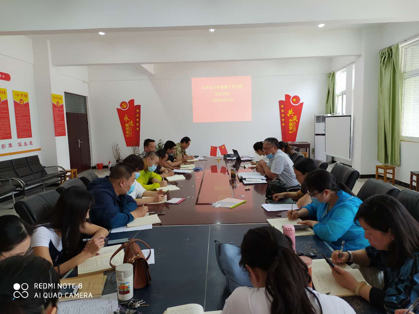 2020年5月25日下午,教工党支部在二楼会议室召开党员大会,党支部书记韩冰主持。