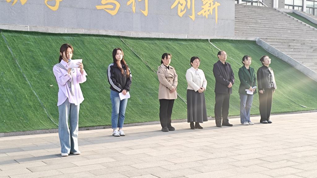 2025年4月7日早7时,艺术设计学院全体党政班子成员和教师以及一、二年级学生齐聚大观广场,举行“艺心向党·旗映青春”主题升旗仪式。团总支负责人王妍主持仪式,师生在晨曦中共同见证五星红旗升起的庄严时刻。