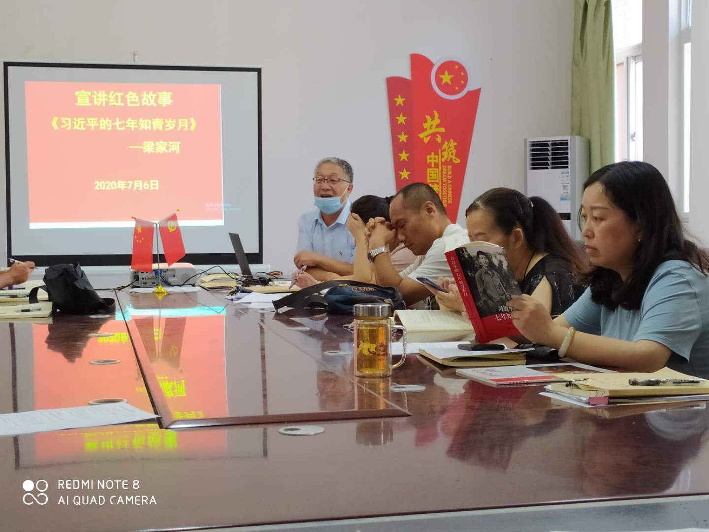 3.宣讲一次红色故事。王江然书记为全体党员宣讲了《习近平的七年知青岁月——梁家河》的故事。