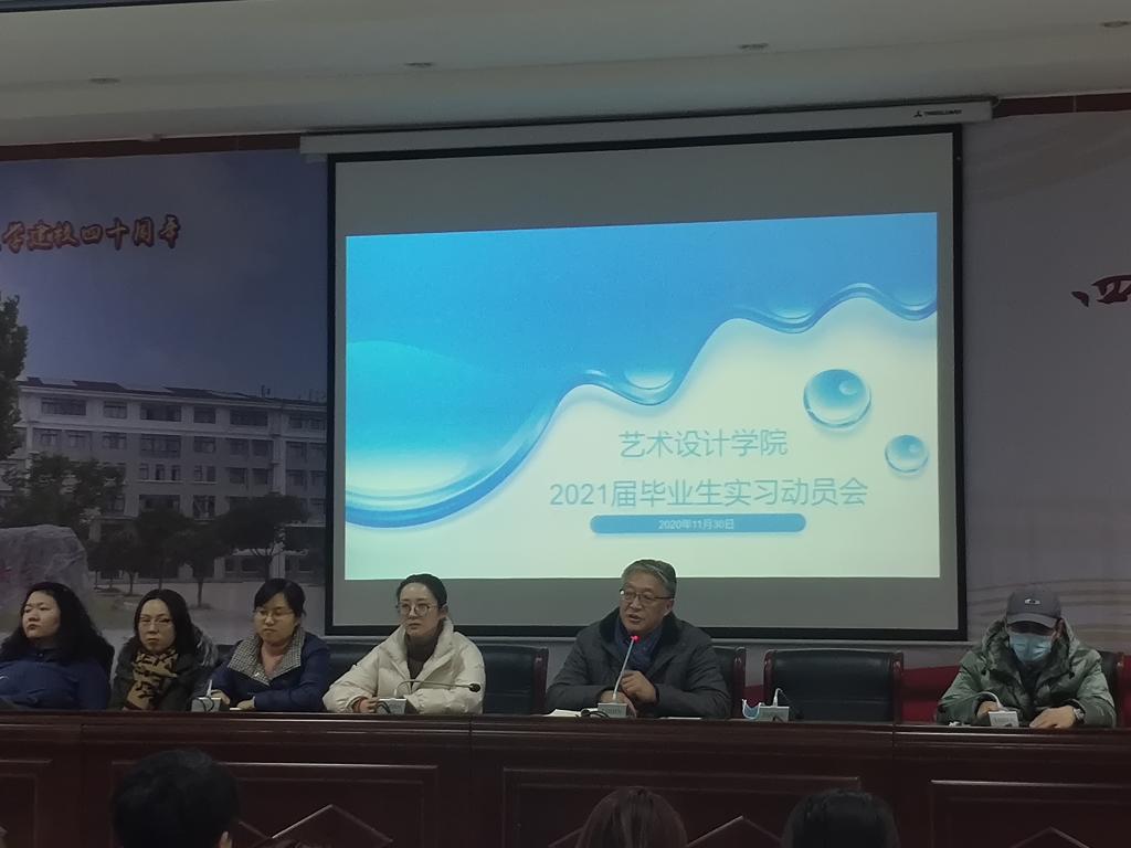 11月30日下午,艺术设计学院在8号楼六楼报告厅召开2021届毕业生实习动员大会。院党总支书记王江然、院长张富云、各专业教研室主任、毕业实习指导老师、毕业班辅导员及全体毕业生参加了此次动员大会,会议由辅导员郭梦聪主持。