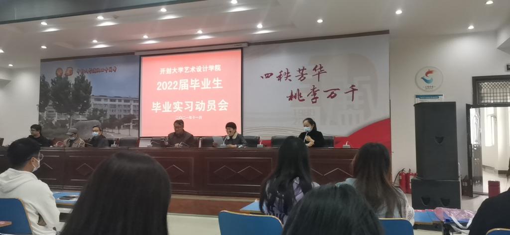 11月1日下午,艺术设计学院在8号楼6楼报告厅召开2022届毕业生实习动员大会。院党总支书记王江然、院长张富云、党总支副书记麻德娟、各专业教研室主任、毕业实习指导老师、毕业班辅导员及513名2022届毕业生参加了此次动员大会,会议由郭梦聪主持。