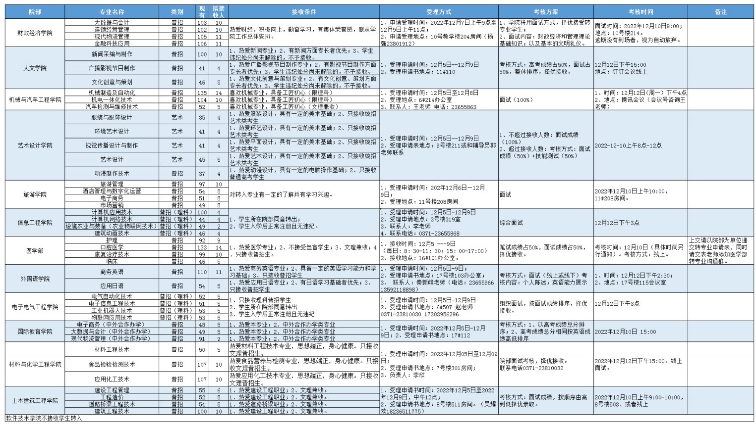 艺术设计学院转专业公示