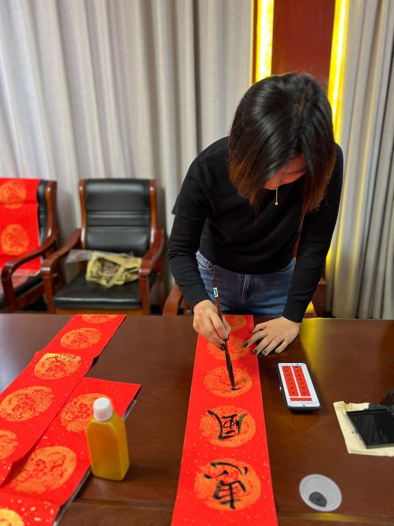 本次活动不仅让广大居民群众感受到新春的温暖和祝福,更深切体会到一纸墨香承载的民族文化自信。下一步,艺术设计学院党总支将继续做好党员‘双报到’活动,下沉一线,为群众做一些力所能及的实事,充分发挥共产党员的先锋模范作用,助力社区建设。