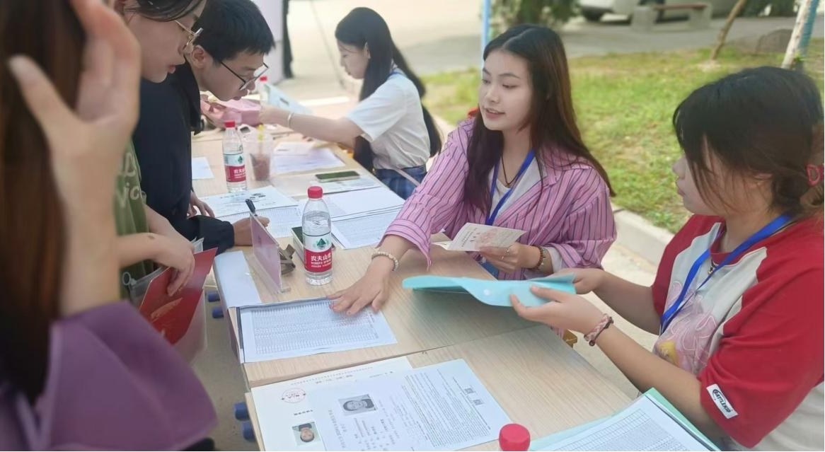 报到现场,秩序井然,流程顺畅。新生们按照网络注册、材料核验、物资领取三大环节有序进行,每一步都充满了效率与温情。迎新工作人员耐心细致,不仅快速高效地完成各项手续,还主动解答新生们的各种疑问,用实际行动诠释了“以心换新”的迎新理念。