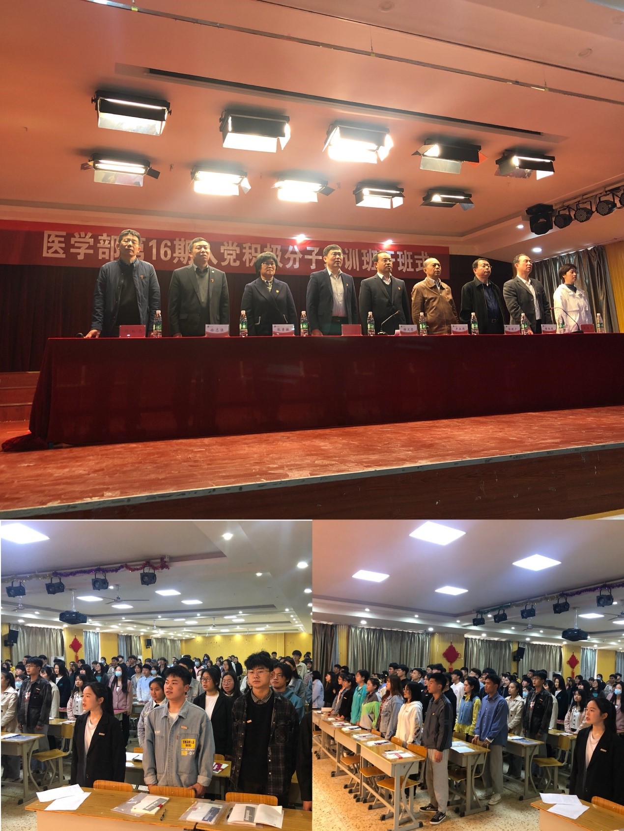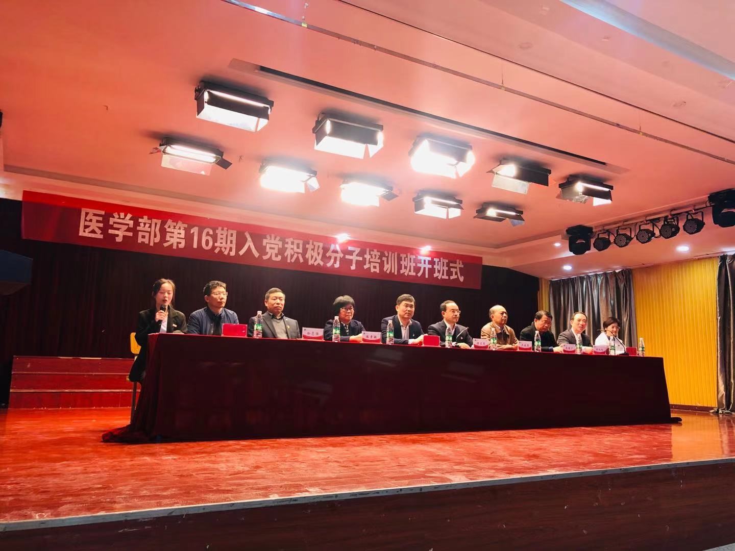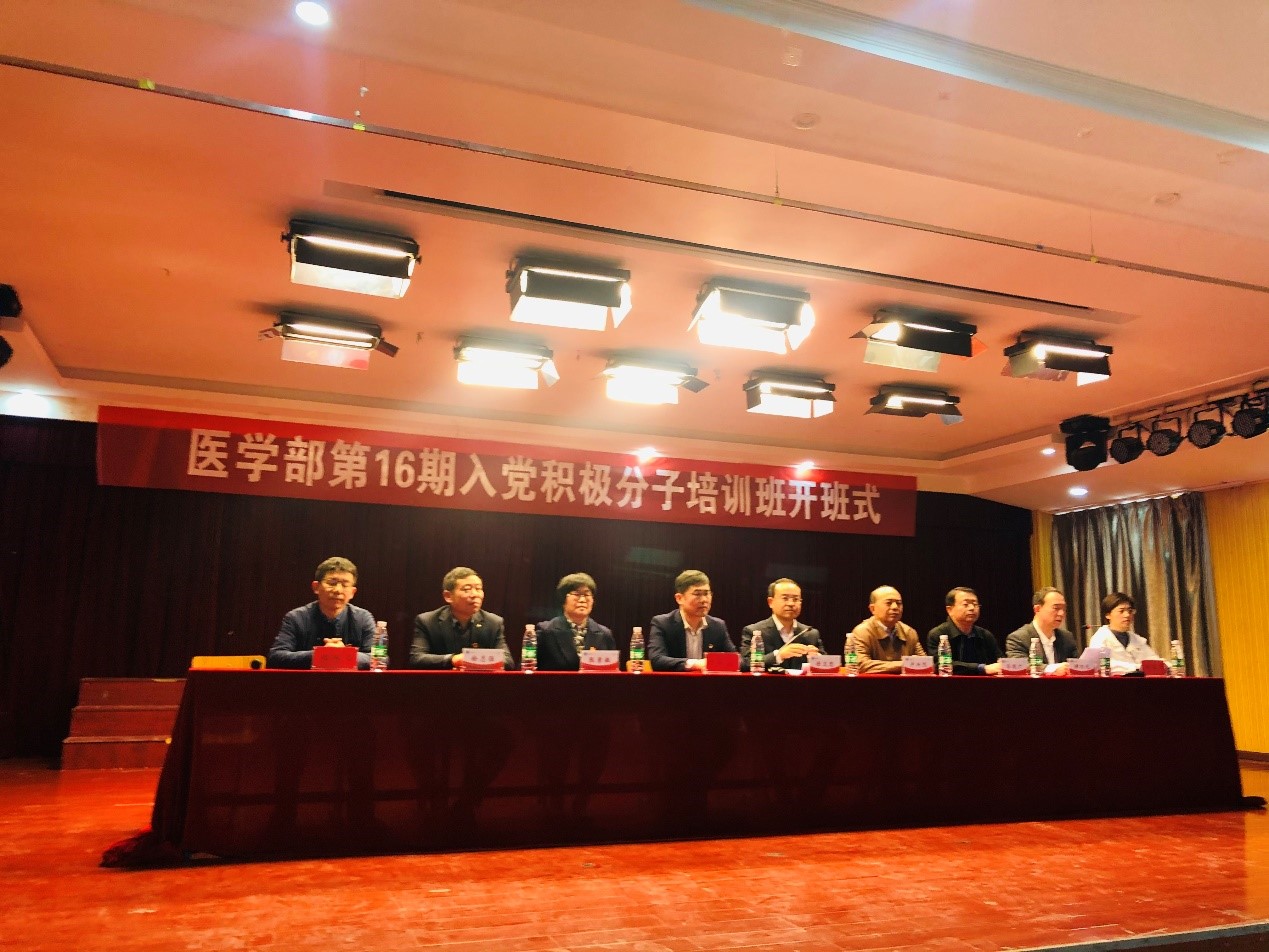 开班仪式在振奋人心的《中华人民共和国国歌》中拉开序幕。365英国上市集团官网党委委员、副校长、医学部主任谢文忠、365英国上市集团官网党委委员、组织统战部部长赵海胜、医学部党委委员、副主任卢兴烈、郭明广、张素敏、谢旭光、徐志强以及医学部学生党支部、医学部党办、团总支等同志参加了开班仪式。医学部党委委员、副主任谢旭光主持本次仪式,介绍了本次培训班的学习安排和具体要求,要求同学们主动参与到党课学习中,切实提升自己的理论水平和思想觉悟。医学部主任谢文忠发表讲话,代表院部党委热烈欢迎全体入党积极分子加入,描述了中国共产党的发展历程,希望大家珍惜此次学习的机会,努力学习党的基础知识、基本理论,将党员身份和学生身份联系在一起,夯实专业基础,在实践中不断总结、不断进步,争取早日成为一名合格的中国共产党员,不忘历史、不忘初心,知史爱党、知史爱国,以良好的精神面貌迎接建党一百周年。