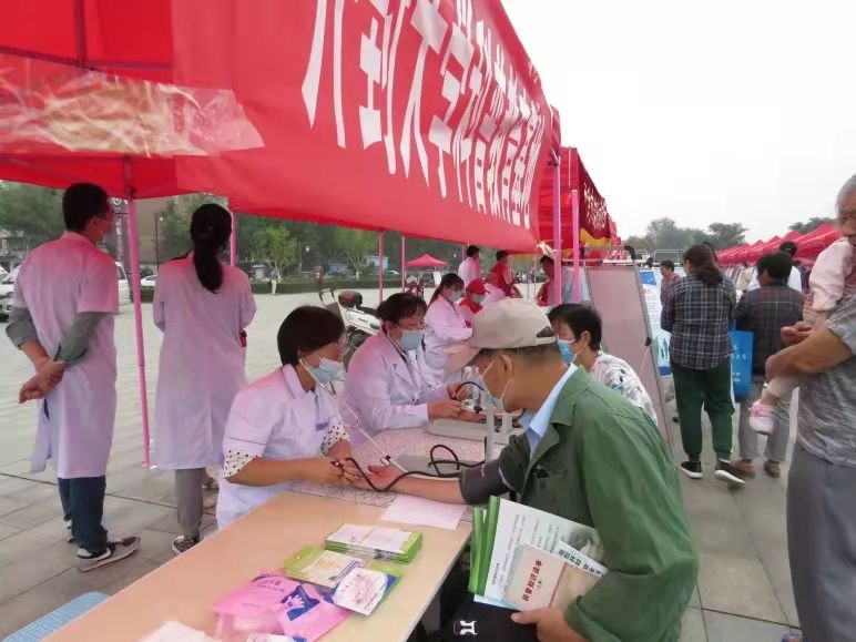 启动仪式后,不断有群众来到医学部展位进行疾病相关问题咨询,活动现场气氛热烈。医学部口腔专家马惠萍、临床专家樊瑞敏、中心实训室负责人王晓明等工作人员现场对群众进行专业的口腔检查、身体检查、血压测量等操作,耐心对群众提出的问题答疑解惑,并普及相关健康教育知识。接受健康科普的群众对工作人员热情的服务态度、专业的知识解答给予高度认可和一致好评。
