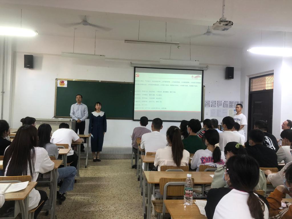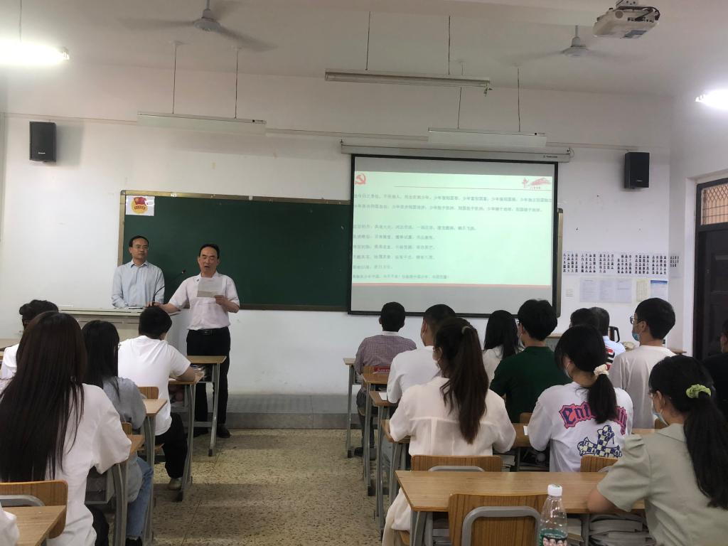 谢文忠校长以自身丰富的实践经验,扎实的理论基础为基,深化信仰与理解,诠释对党的热爱。以党中央对十九届六中全会决议提出的明确要求——“突出中国特色社会主义新时代这个重点”为主要说明对象,阐明百年未有之大变局的两个大局,诠释新时代的科学内涵。以丰富的文化涵养、诗词文化为锦,引以红旗渠精神、焦裕禄精神、大别山精神为优秀社会主义精神文化范例。结合诗词,用浅显而严谨的语言阐释出对国家发展的信心和对青年人的关怀,使党课内容深入人心。党课在全场激情昂扬地朗诵出自梁启超先生的《少年中国说》之中圆满结束。