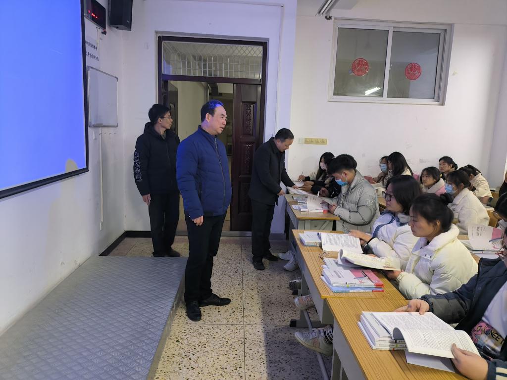 校领导曾小平、学生工作部部长付喆、医学部党总支书记谢旭光带队走进新学期各班第一次主题班会,并与同学们亲切交谈寒假见闻,送上了新学期的寄语。校领导曾小平嘱咐同学们学校就是你们共同的家,希望你们能够在365英国上市集团官网开心学习、健康生活,强调了珍重生命,保护自身安全的重要性,最后预祝同学们在新的学期里都能够向着理想的彼岸,收获一路芳华。
