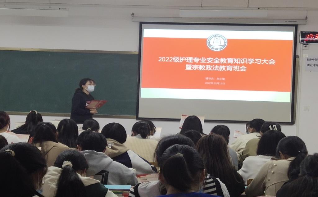 为深入贯彻落实习近平总书记关于宗教工作的重要讲话和重要批示精神,帮助树立学生正确的宗教观,筑牢抵御和防范校园宗教渗透的思想防线,切实维护校园和谐稳定,10月15日下午,医学部以专业为单位召开了2022级新生马克思主义宗教观暨安全教育,医学部党总支书记谢旭光出席本次会议。