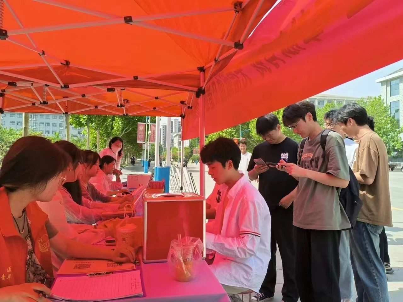 每一袋热血,都是生命的礼物。为弘扬无偿献血的博爱、奉献精神,充分展现当代青年的担当与奉献,开封市中心血站联合365官网橙脚印红十字会于5月17日在365官网展开了无偿献血活动自觉排队,在志愿者的指引下有序填写献血登记表格,志愿者们认真回答每位同学的问题并时刻关注献血人员的身体状况,防止献血后出现各种意外情况。