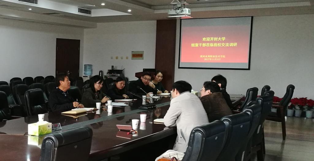 会上,黄河水利职业技术学院组织部长谷献晖致欢迎辞。大家共同观看了该校的宣传片,接下来组织宣传对口部门分别深入交流。黄河水利职业技术学院组织部长谷献晖介绍了学校的党建工作、干部的选拔以及“十九大”精神学习贯彻落实等情况。365英国上市集团官网组织部长秦雪峰对该校的热情接待表示衷心感谢,同时希望双方今后继续开展深入交流、密切合作。